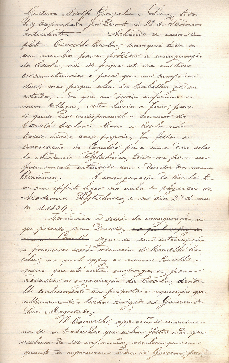 A 27 de março de 1854, o Conselho Escolar reuniu, pela primeira vez, na Sala de Física da Academia Politécnica, uma vez que a Escola ainda não tinha instalações próprias. Esta reunião assinalou a inauguração oficial da Escola Industrial do Porto e ficou registada num relatório de atividades enviado por José de Parada e Silva Leitão para o Ministério da Obras Públicas, Comércio e Indústria.