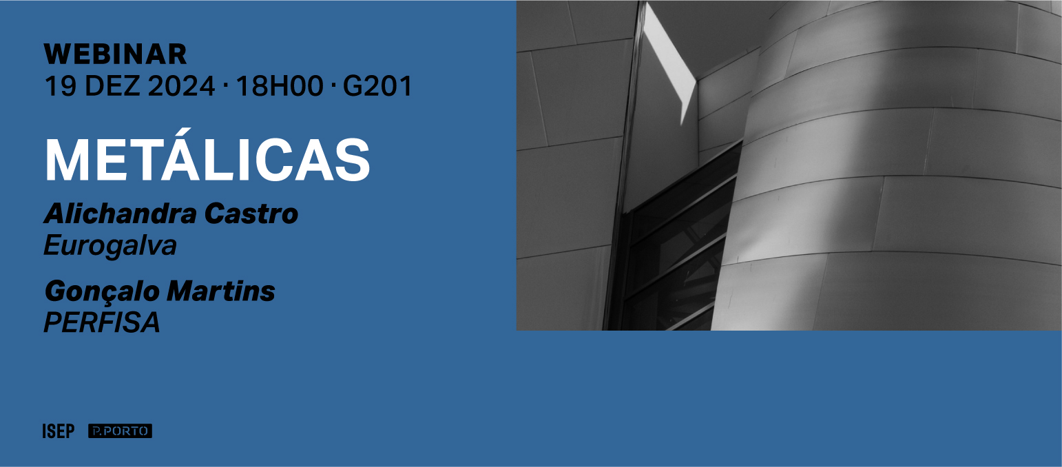No próximo dia 19 de dezembro, irá realizar-se, pelas 18h, o "Webinar Metálicas”, promovido pelo Mestrado em Engenharia Mecânica (MEM) do Instituto Superior de Engenharia do Porto (ISEP).