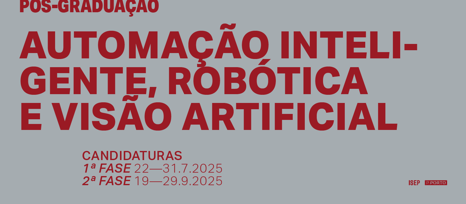 Está a decorrer, até dia 31 de julho, a 1.ª fase de candidaturas para do curso de pós-graduação em Automação Inteligente, Robótica e Visão Artificial do Instituto Superior de Engenharia do Porto (ISEP).